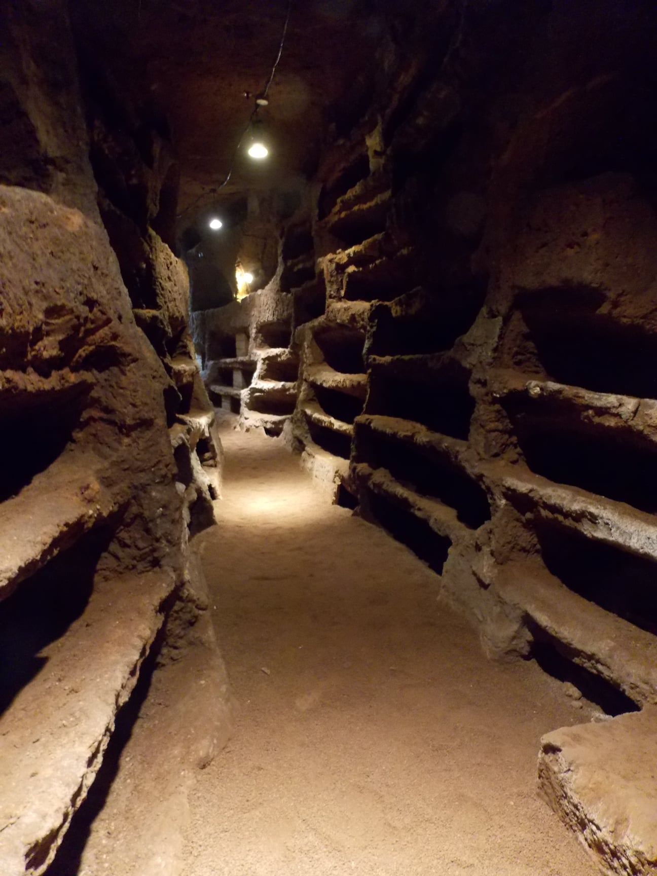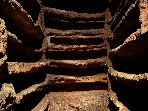 Upon entering the catacombs, visitors are immediately greeted by a labyrinth of galleries that stretch underground for over thirty meters. The catacombs are divided into three main galleries and several secondary branches, each filled with tombs of various types: from simple loculi, narrow spaces for a single body, to arcosolia, larger and decorated niches reserved for the more prominent members of the community. Each tomb, originally sealed with tiles or bricks and closed with white mortar, tells a personal and collective story of life, death, and hope.